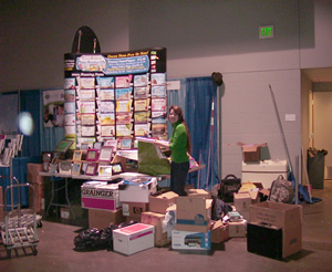 By 5 o'clock, Thursday, we had set up our booth, and were ready for a horde of customers! We were ready to serve, ready to minister, and ready to earn a profit towards our house savings. Our first order came in before the hall doors even opened, and we were very excited about a day full of sales and ministry.